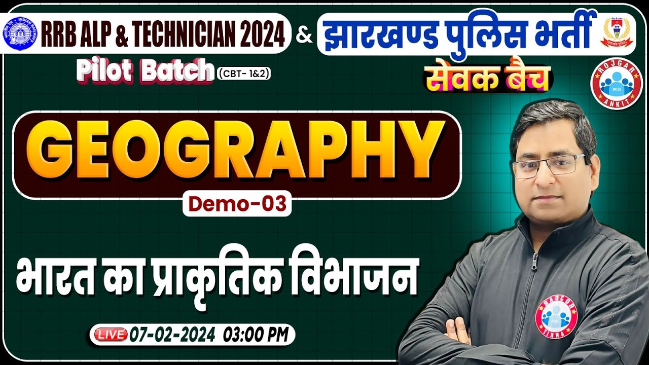 RRB ALP & Tech. 2024 | Geography Demo #3, भारत का प्राकृतिक विभाजन, Jharkhand Police Geography Class