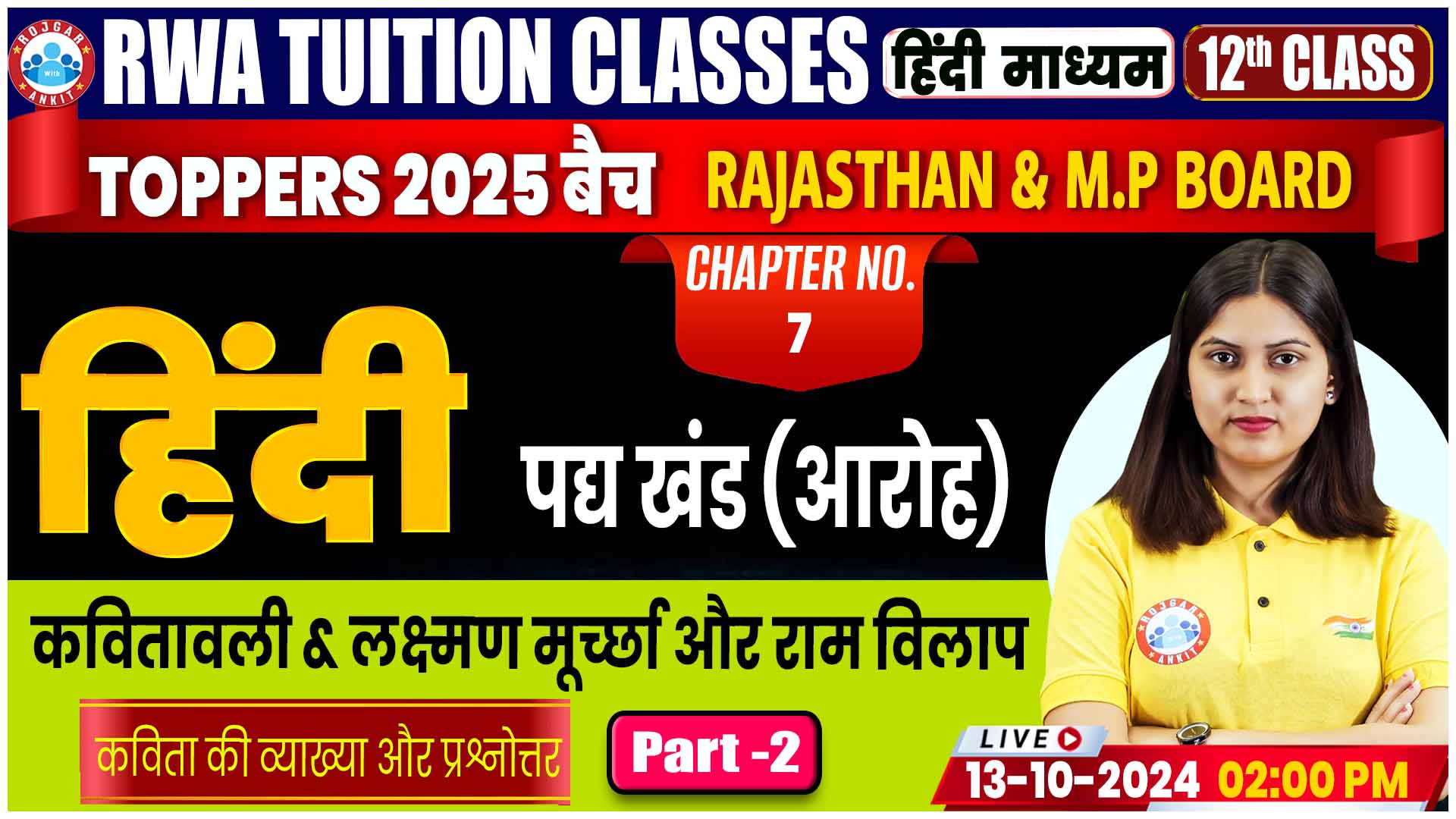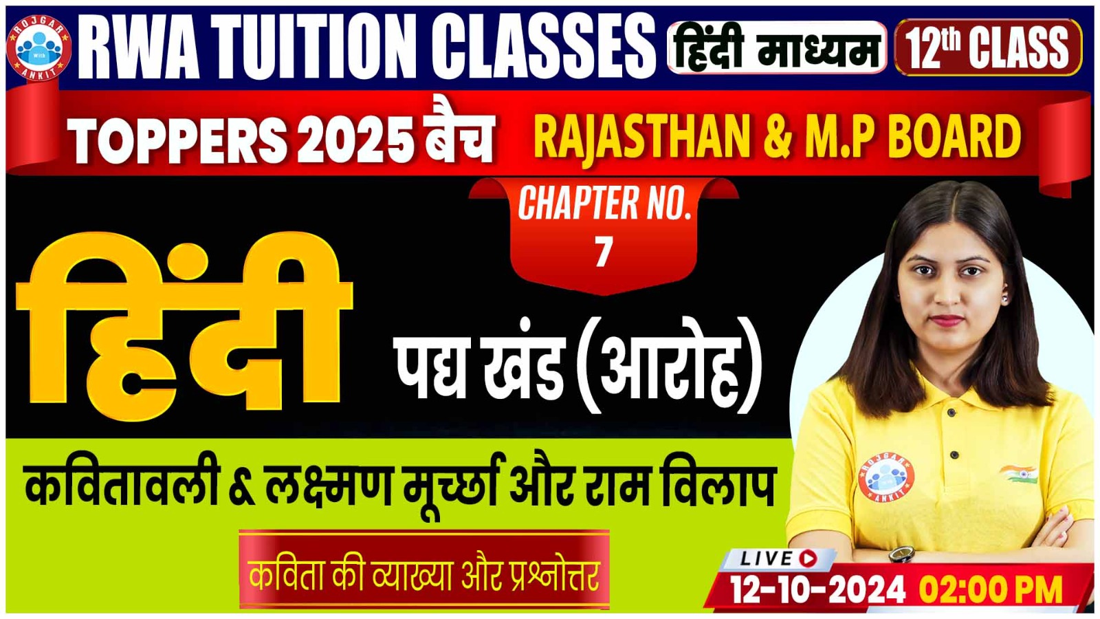 Hindi By Varsha Mam || कवितावली & लक्ष्मण मूर्च्छा और राम विलाप, Chapter No-7 (कविता की व्याख्या और प्रश्नोत्तर)