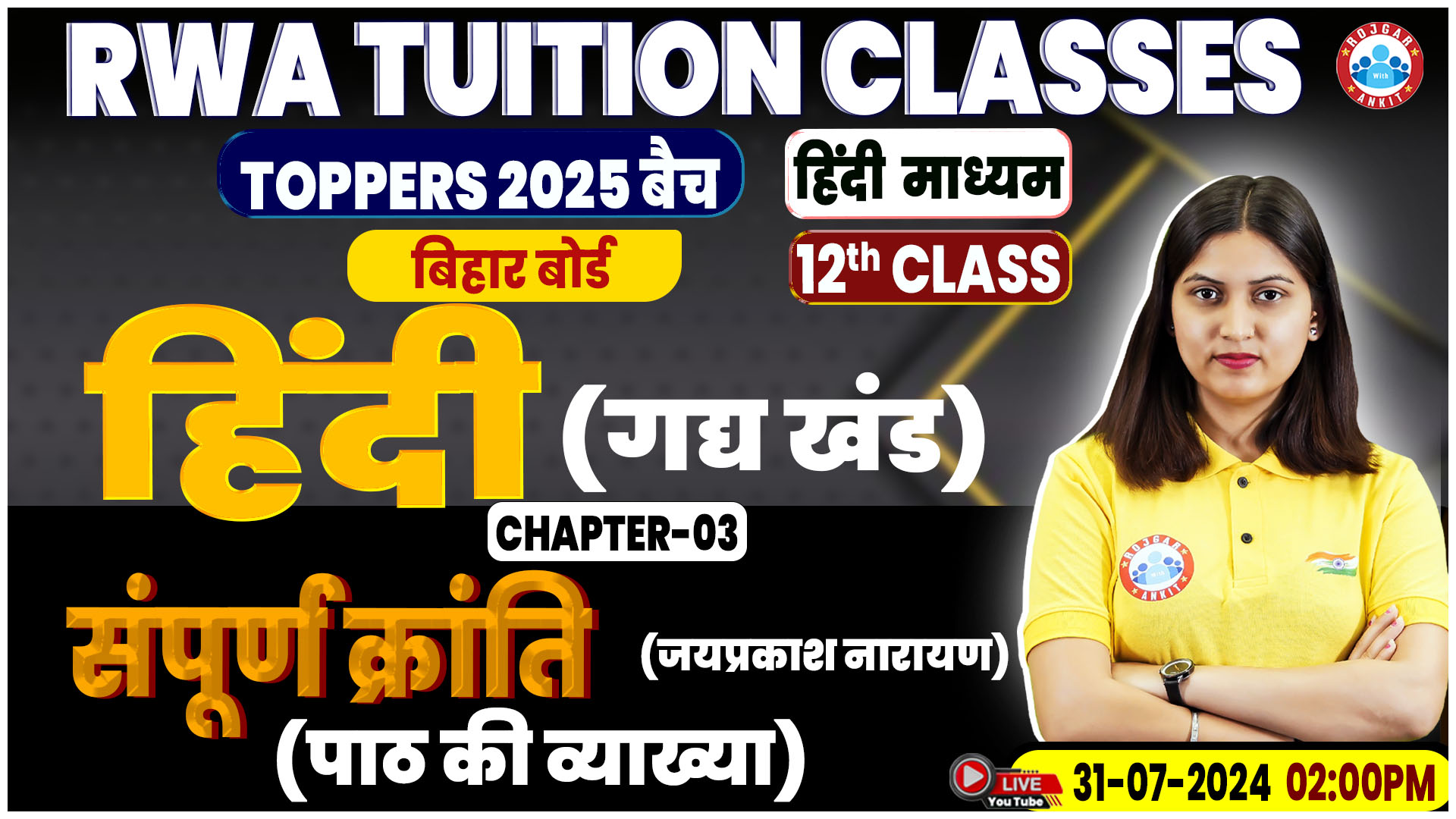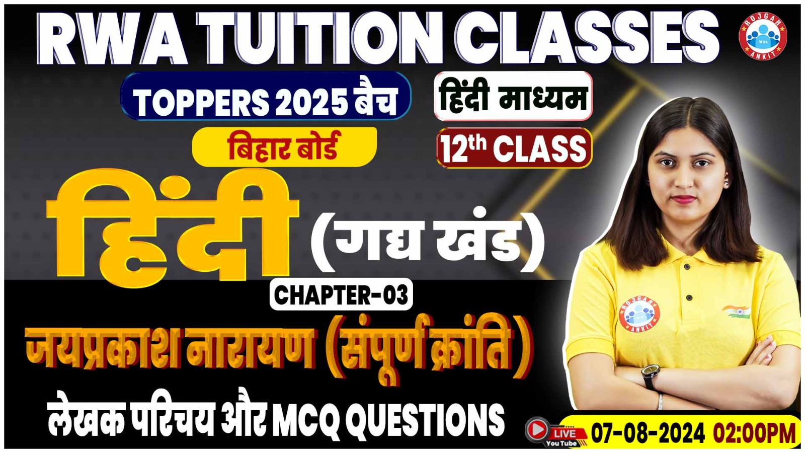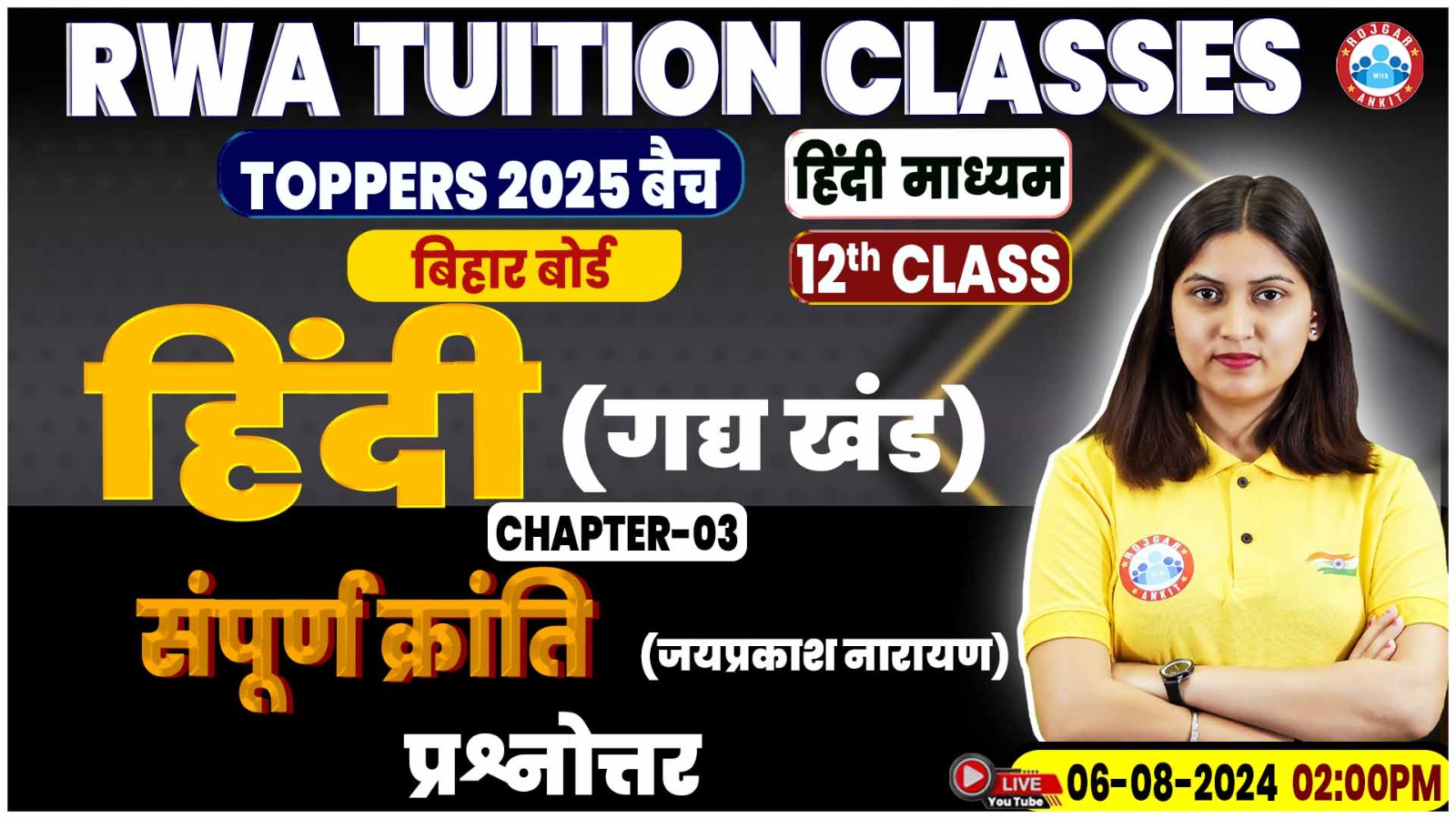 Hindi By Varsha Mam || संपूर्ण क्रांति, जयप्रकाश नारायण (लेखक परिचय और MCQs)