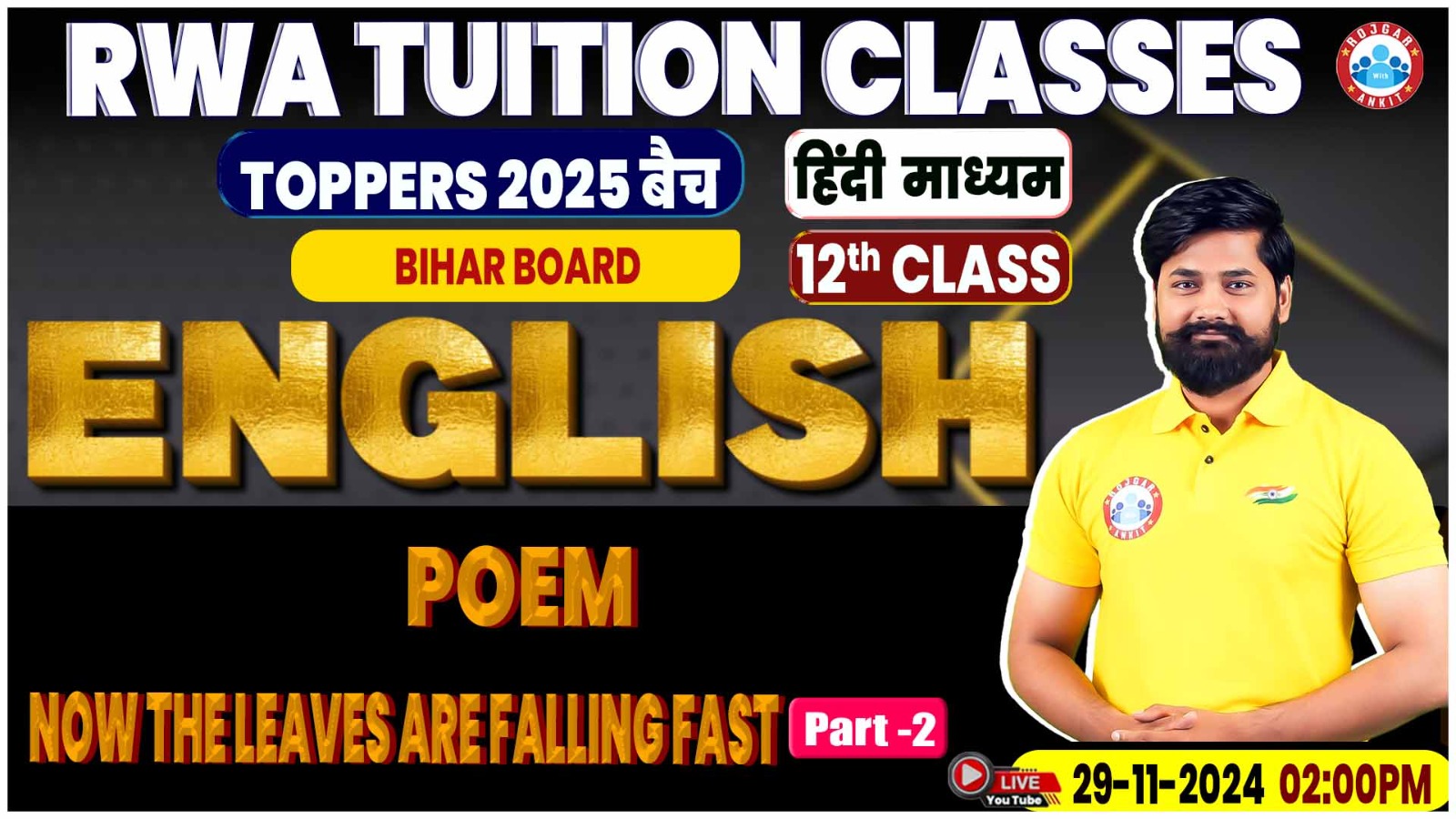 English By Shahrukh Sir || Now The Leaves Are Falling Fast