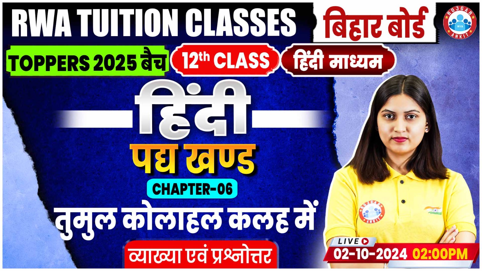 Hindi By Varsha Mam || तुमुल कोलाहल कलह में (व्याख्या एवं प्रश्नोत्तर)