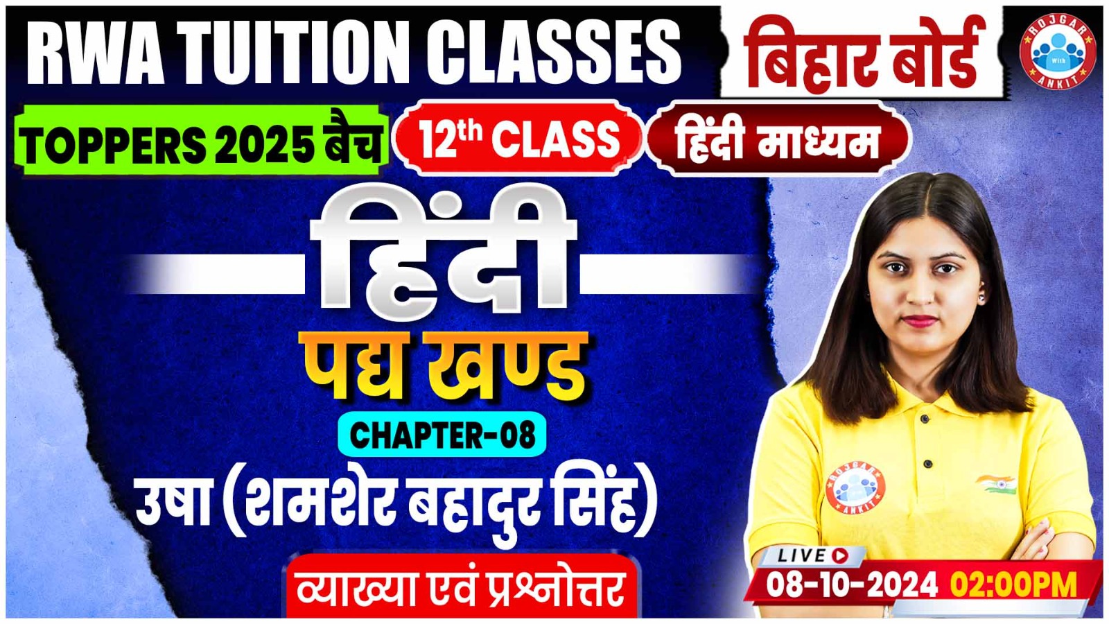 Hindi By Varsha Mam || उषा, शमशेर बहादुर सिंह (व्याख्या एवं प्रश्नोत्तर)