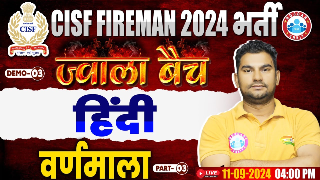 CISF Fireman Classes 2024 | Jawala Batch | वर्णमाला #3 | CISF Hindi By Neeraj Sir