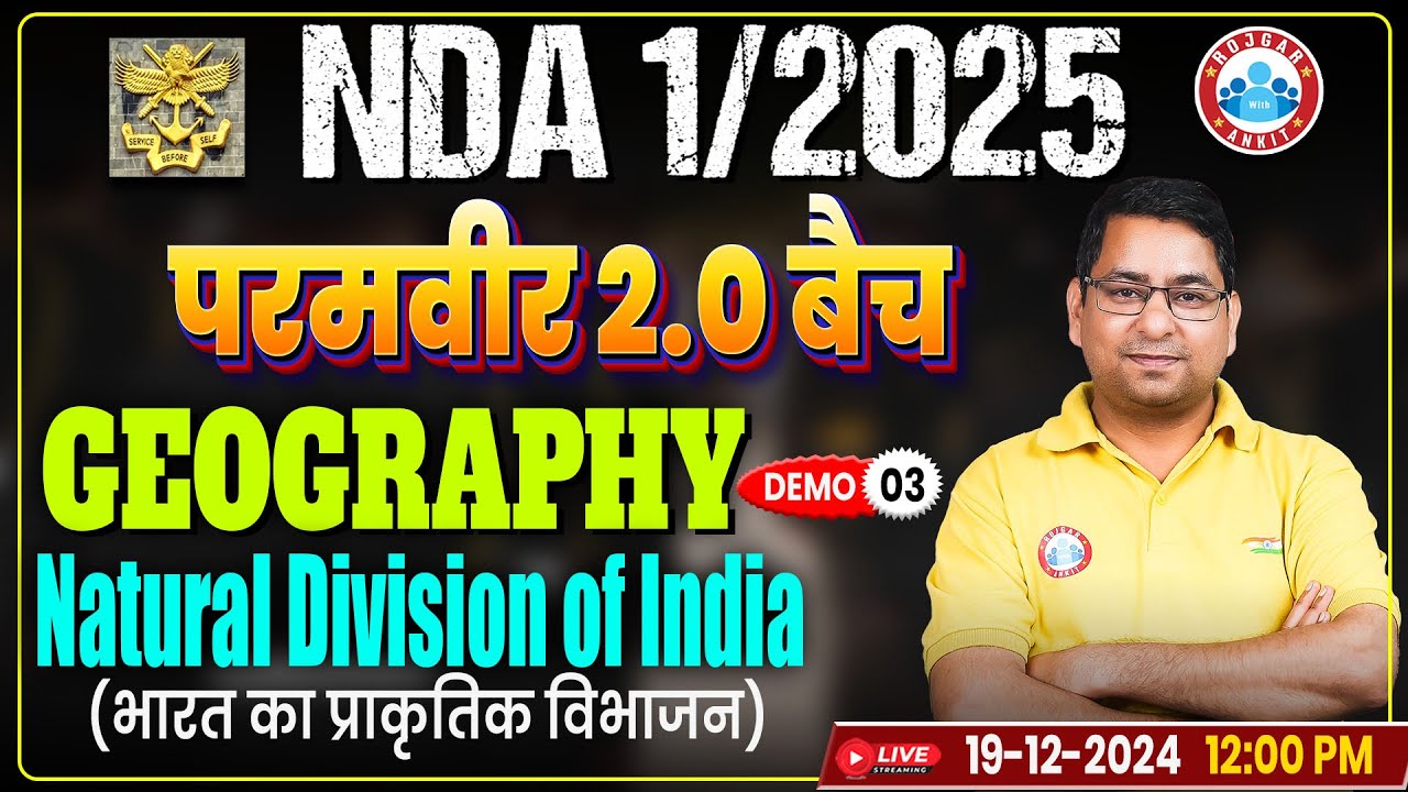 Geography for NDA 1 2025 | परमवीर 2.0 बैच | NDA Geo Demo Class 3 | भारत का प्राकृतिक विभाजन By Arun Sir
