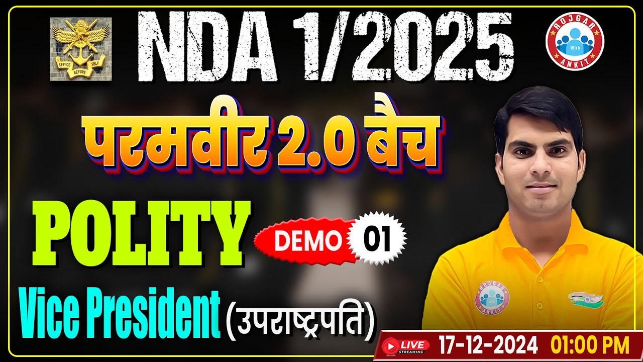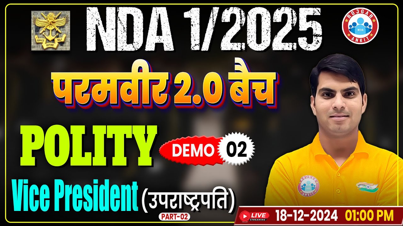 Polity for NDA 1 2025 | परमवीर 2.0 बैच | NDA Polity Demo Class 2 | Vice President By Ranjeet Sir