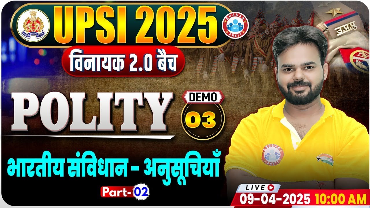 UPSI Polity Classes 2025 | भारतीय संविधान -अनुसूचियाँ | UP Police SI Polity Demo #02 By Digvijay Sir