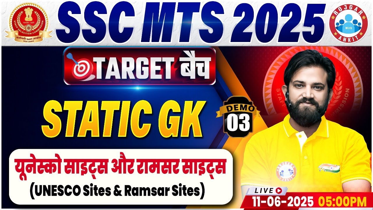 SSC MTS 2025 | SSC MTS Static GK Classes | यूनेस्को साइट्स और रामसर साइट्स | MTS Static GK Demo #03