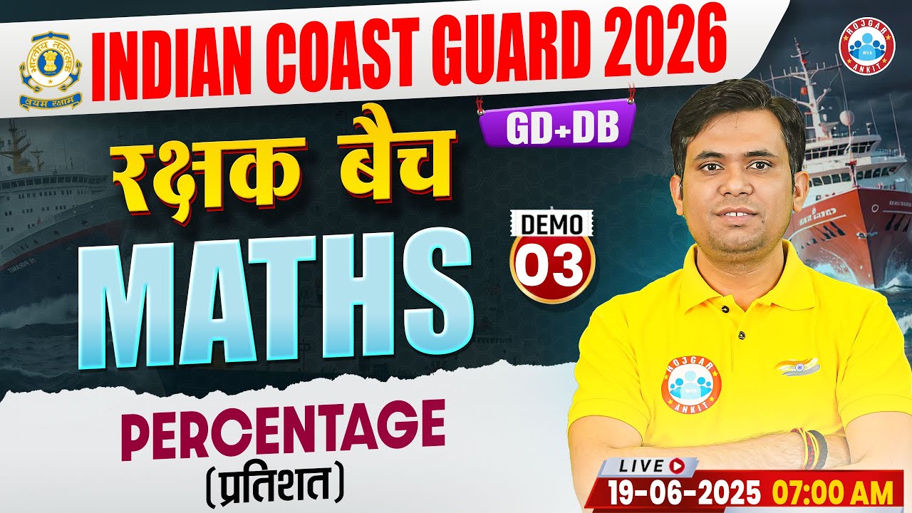 Indian Coast Guard Maths Classes 2025 | रक्षक बैच | Percentage | ICG GD & DB Maths Demo Class 03
