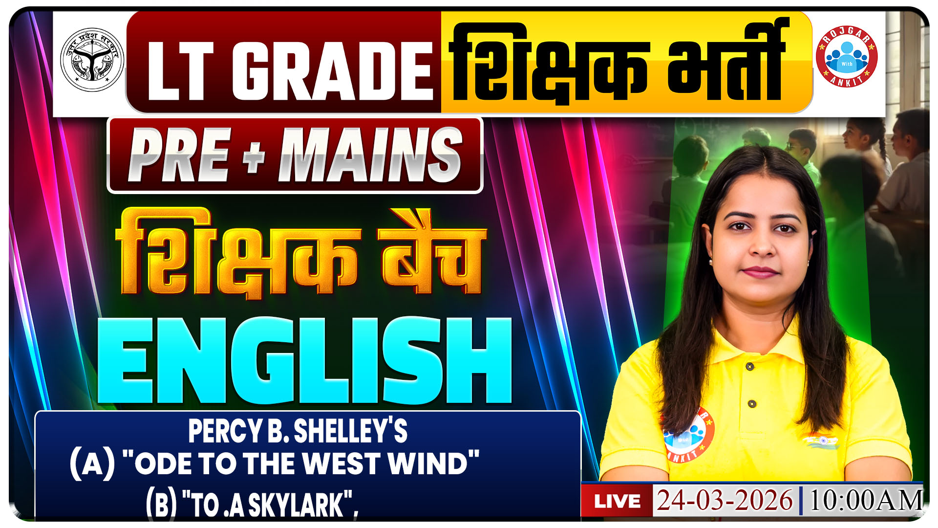English By Kiran Mam || Percy B. Shelley's (a) "Ode to the West Wind" (b) "To .a Skylark",