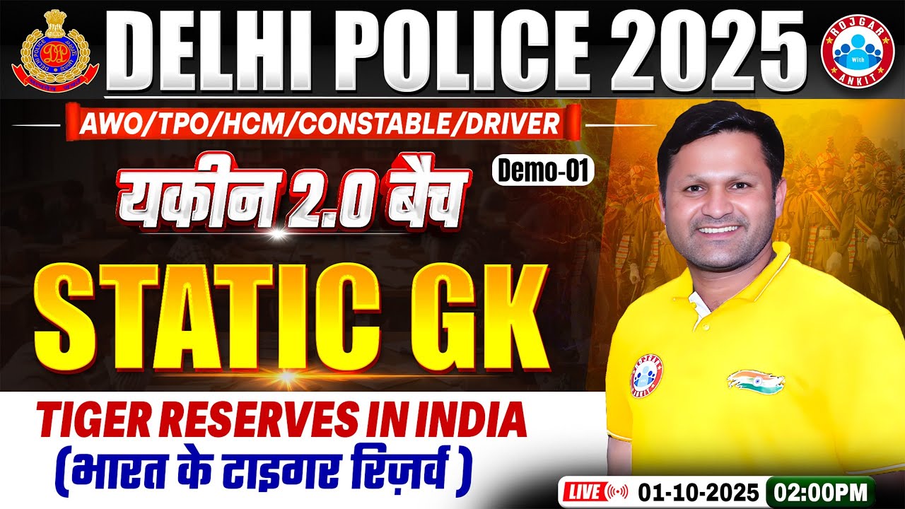 Delhi Police Static GK Class | Tiger Reserve in India | Delhi Police Static GK Demo 01! Sonveer Sir