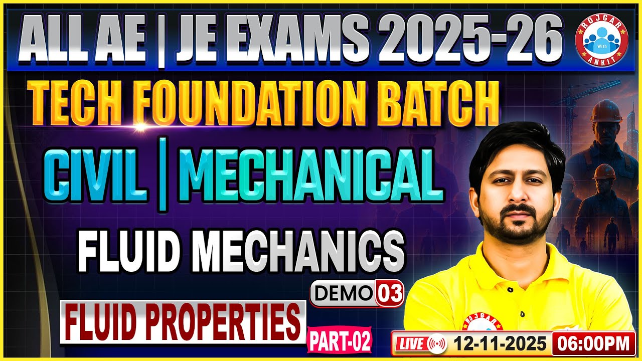 All AE/JE Tech Foundation Batch | Fluid Mechanics Demo 02 | Fluid Properties | CE & ME | Anil Sir