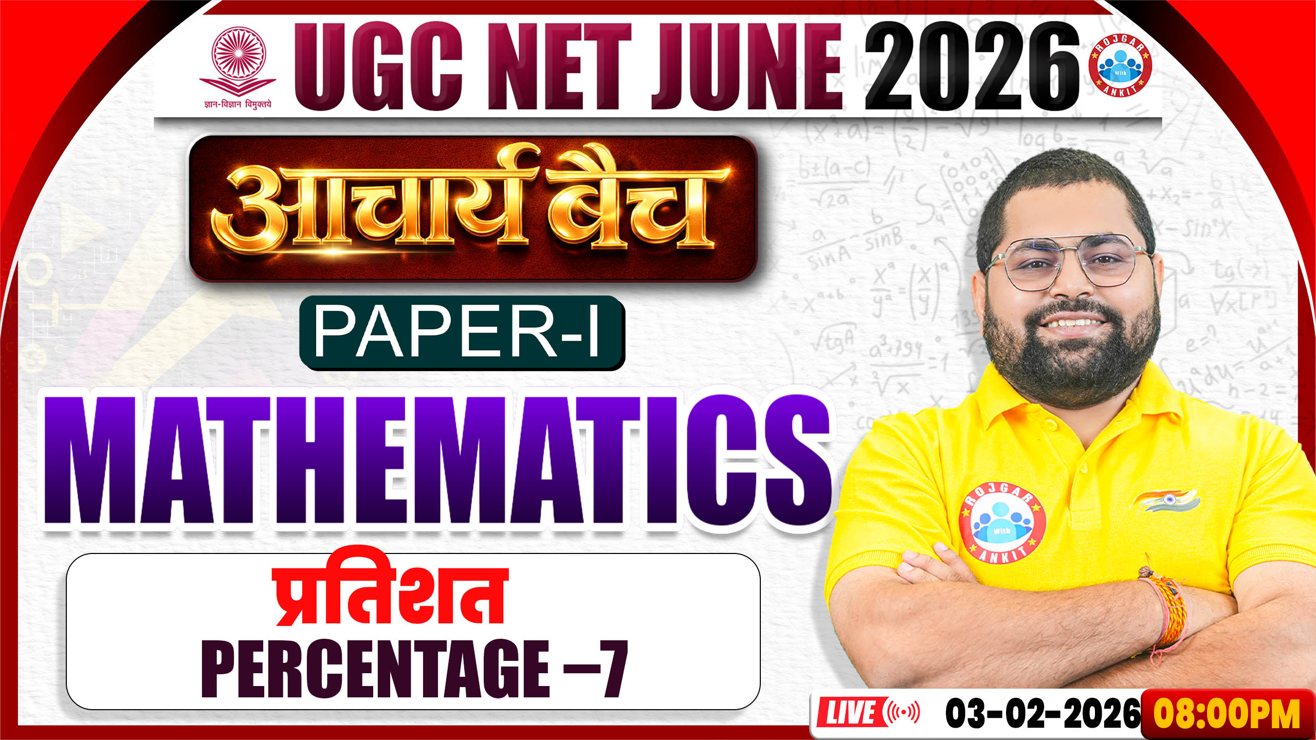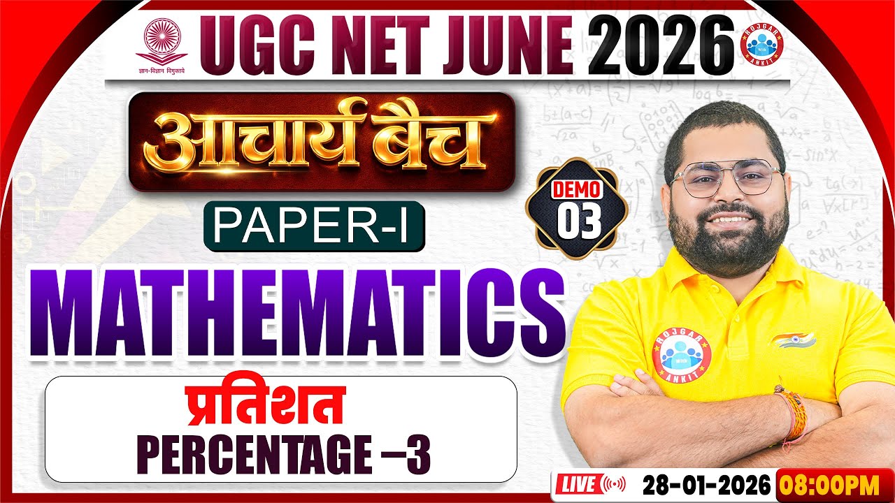 UGC NET Maths 2026 | Maths: Percentage | UGC NET Paper 1 Maths Class | आचार्य बैच Demo 03