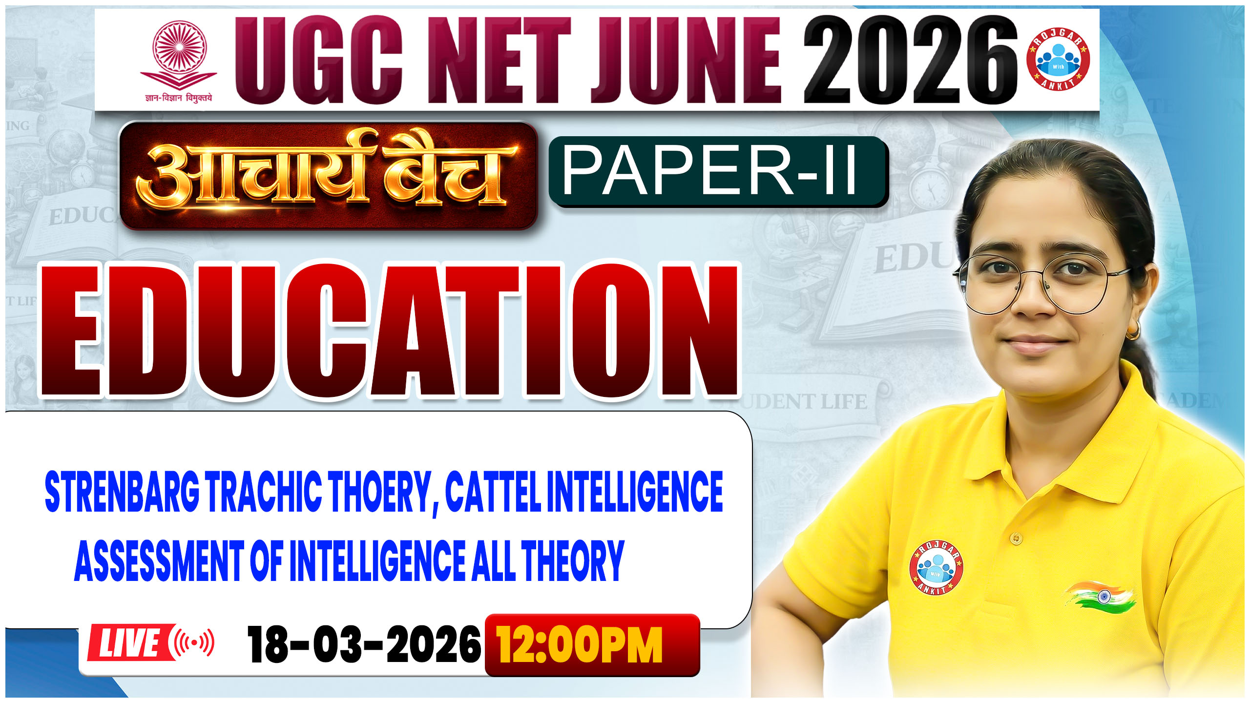 Education By Sarita Mam || Strenbarg Trachic Thoery, Cattel Intelligence, Assessment of Intelligence All Theory