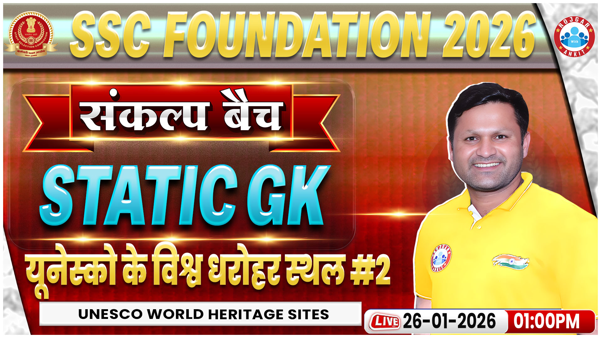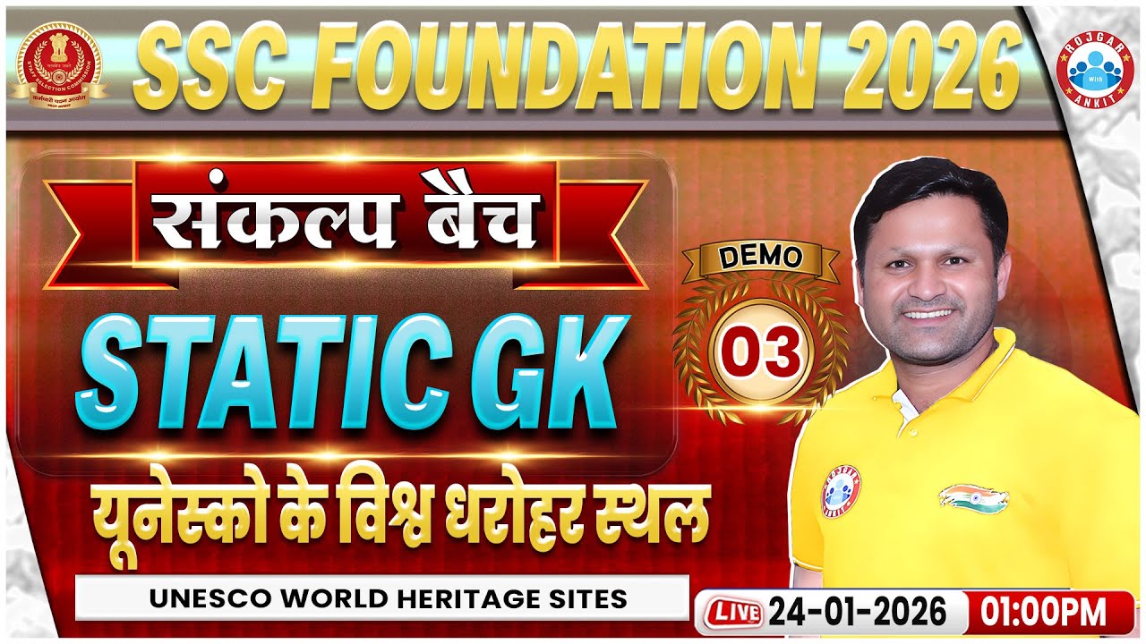 SSC Foundation 2026 | SSC Static GK Classes | यूनेस्को के विश्व धरोहर स्थल | Demo 03 | संकल्प बैच
