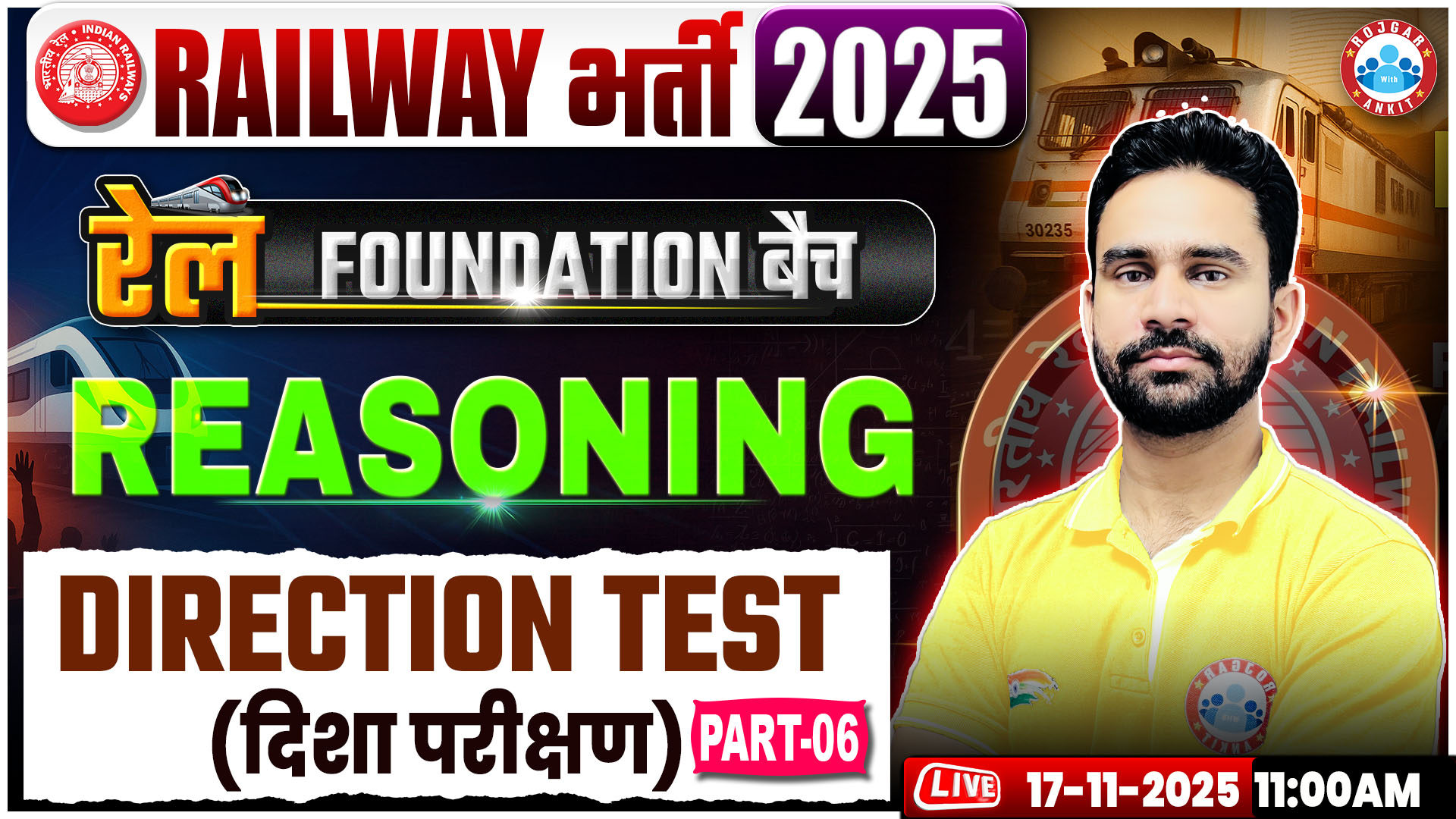 Railway Vacancy 2025 | रेल Foundation Batch 2025 | Direction Test | Reasoning Demo 01 | Rahul Sir